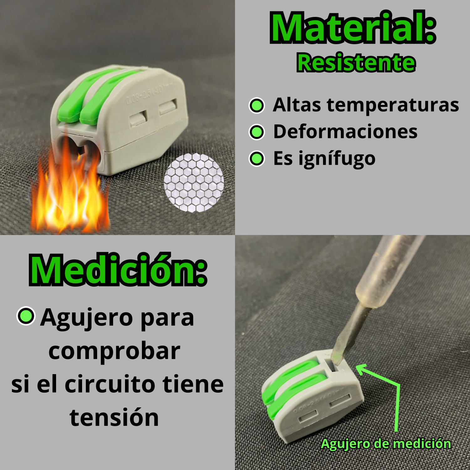 Yo soy de la vieja escuela, 12 años poniendo cinta aisladora, pero mi hijo me trajo estos verdes y los probé en un trabajo, la diferencia es tremenda. Lo que antes me llevaba 10 minutos enrollando cinta, ahora son 2 minutos levantando palancas, metés el cable, cerras y listo, además quedan re prolijos, el cliente lo nota, muy contento con los resultados